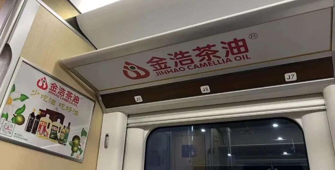 登上金浩茶油號城際列車,從列車車身、車門,到車廂內(nèi)的展牌、行李架和座椅桌貼,金浩茶油那句朗朗上口的“少吃油,吃好油”廣告語隨處可見,無不彰顯著金浩對于提倡健康飲食文化的責(zé)任和秉持!