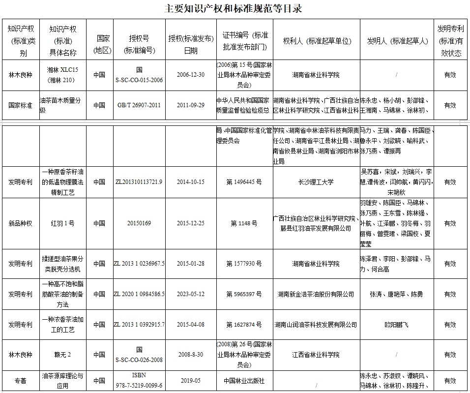 主要完成單位:湖南省林業(yè)科學(xué)院、江西省林業(yè)科學(xué)院、廣西壯族自治區(qū)林業(yè)科學(xué)研究院、北京林業(yè)大學(xué)、長(zhǎng)沙理工大學(xué)、湖南新金浩茶油股份有限公司、湖南山潤(rùn)油茶科技發(fā)展有限公司